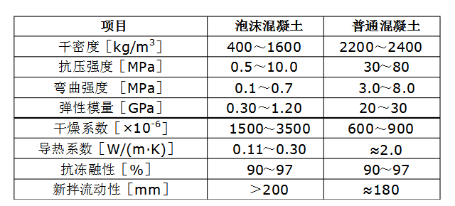 泡沫混凝土作為一種新型材料,具有保溫隔熱,兼具防水,防火等性能。由于其施工簡單,保溫隔熱性能良好,作為現有隔熱材料陶粒的替代品被廣泛運用在工程項目中。其基本原理是利用混凝土中封閉氣孔達到保溫隔熱的效果。表1為正常養(yǎng)護條件下,普通混凝土與泡沫混凝土物理力學性能的比較。